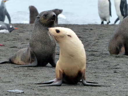 Eine weiße Pelzrobbe (Gendeffekt - kein Albino da schwarze Flossen vorhanden) zu entdecken, ist schon was besonderes.
