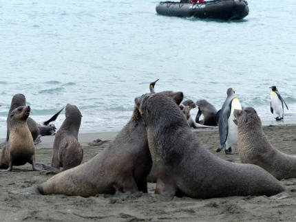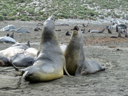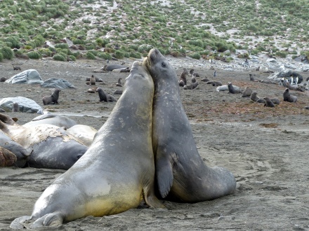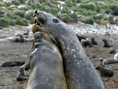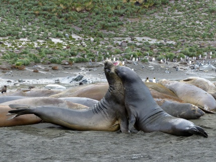Kurz vor Ankunft unseres Zodiacs messen zwei Seelefanten ihre Kräfte.