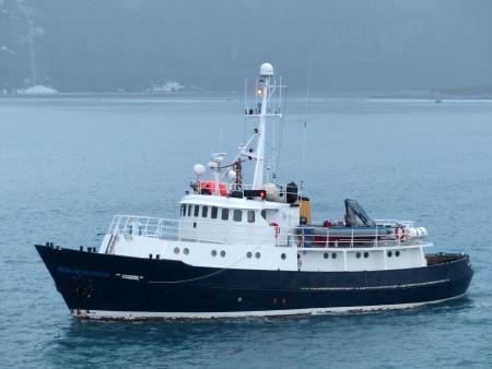 Mit unserer Ankunft verlässt das 1960 in Norwegen gebaute Schiff Hans Hansson die Bucht.