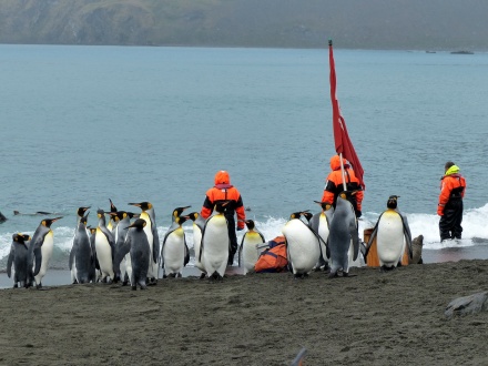 Unsere Lektoren haben am Rand der Kolonie in der etwa 100.000 Pinguine leben eine Linie gezogen.