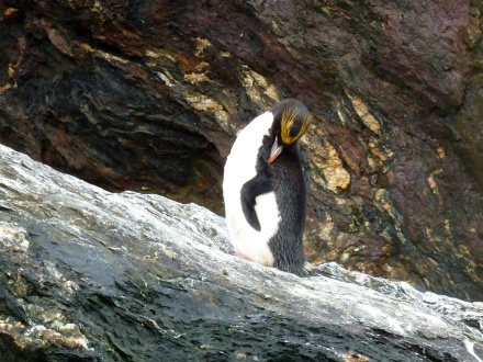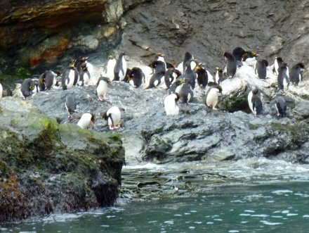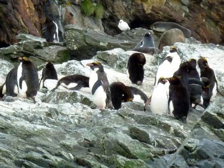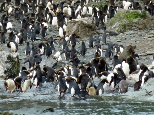 Eine Bucht weiter finden wir die "Goldgelockten" Pinguine zwischen den anderen stehen.