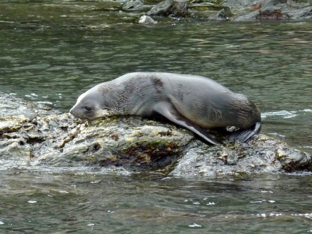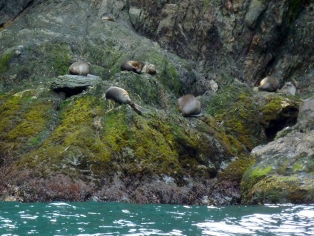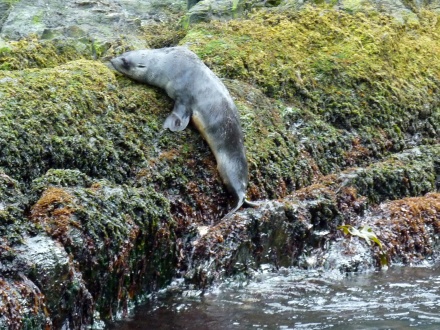 Wir fahren rückwärts in eine enge Ausschneidung hinein und können Robben sehen, die sich entspannen.