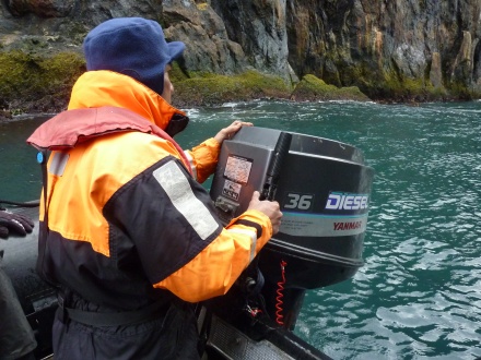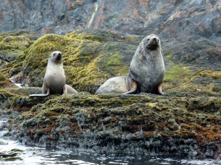 Für den heutigen Nachmittag ist eine Zodiac-Expedition geplant. Wir haben großes Glück und fahren mit der Biologin Silvia Stevens und dem großartigen Matrosen JoyJoy, der das Zodiac rückwärts in kleine Höhlen und sehr eng an die Felsen fährt, um ja alles genaustens zu sehen.
