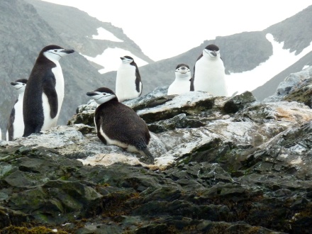 Aber erstmal entdecken wir "nur" Zügel- bzw. Kehlstreifenpinguine (Chinstrap Penguin).