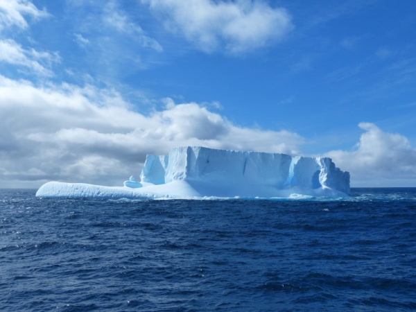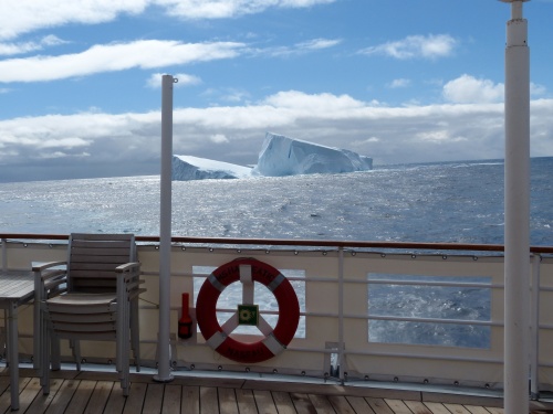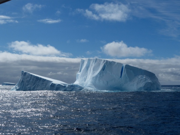 Draußen passieren wir pünktlich zur Mittagszeit gigantische Eisberge, die aus dem Weddellmeer stammen.