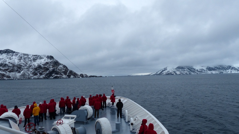 Als nächstes befahren wir durch die 1,9km lange Normanna Strait, die zwischen Signy Island und Coronation Island liegt. Diese Verbindung wurde 1823 durch Matthew Brisbane unter dem Kommando von James Weddell entdeckt. Der Name leitet sich wahrscheinlich von der Normanna Whaling Co. ab, die unter Kapitän Petter Sorlle 1912-1913 mit dem Fabrikschiff Normanna in dieser Region jagte.