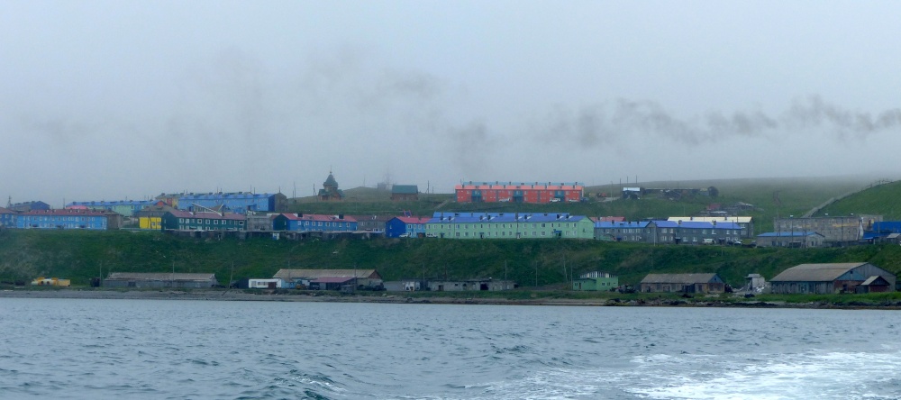 Um 7Uhr warfen wir den Anker vor der Siedlung. Die Lufttemperatur betrug 7°C und Nebel lag über der Bucht. Der Ort wurde 1826 von Aleuten der Insel Atka, die von russischen pelzhändlern auf diese Inseln umgesiedelt wurden, gegründet. Heute ist die beringinsel weitestgehend ein Naturschutzgebiet, so dass die Armee, der öffentliche Dienst sowie Fischfang als Erwerbsgrundlage dienen.