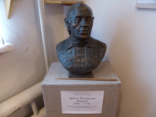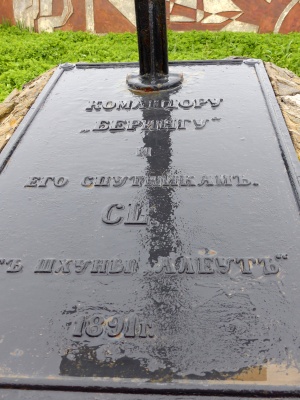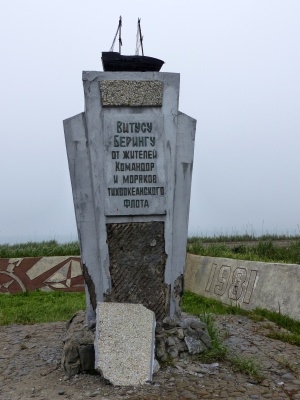 Auf einem kleinen Platz finden sich Denkmäler zu Ehren des Namensgebers und Entdeckers der Insel. Im Rahmen der zweiten Kamtschatka-Expedition strandete sein Schiff Sankt Peter (Swjatoi Pjotr) im Spätherbst 1741. Etwa die Hälfte der Mannschaft einschließlich Bering selbst starben hier an Kälte, Entkräftung und Skorbut.