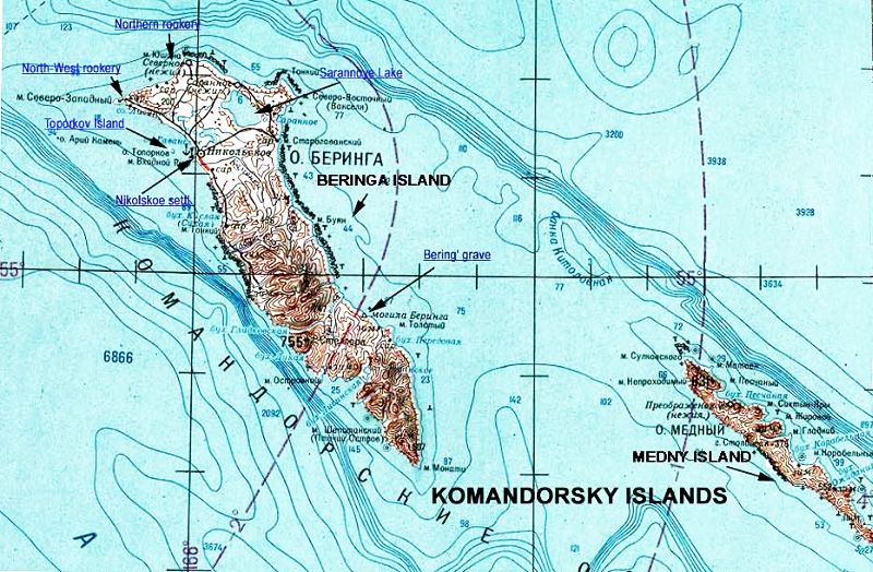 Unser Vormittagsziel ist die Siedlung Nikolskoje auf der Bering-Insel. Sie gehört zu den Kommandeurinseln (Командорские острова), die 187km östlich von Kamtschatka liegen und gelogisch gesehen den westlichen Teil der Aleuten darstellen.