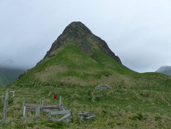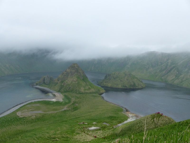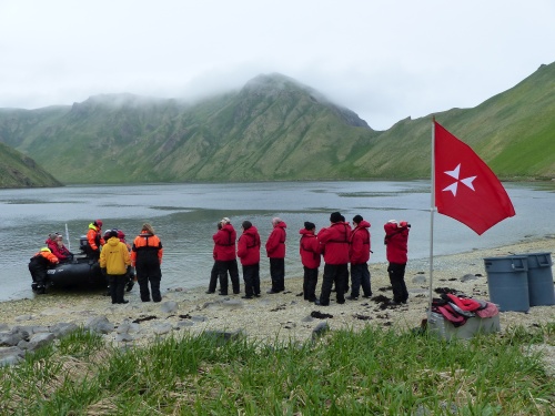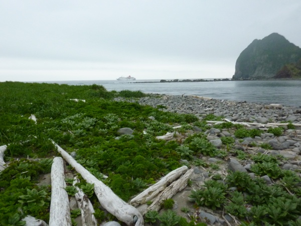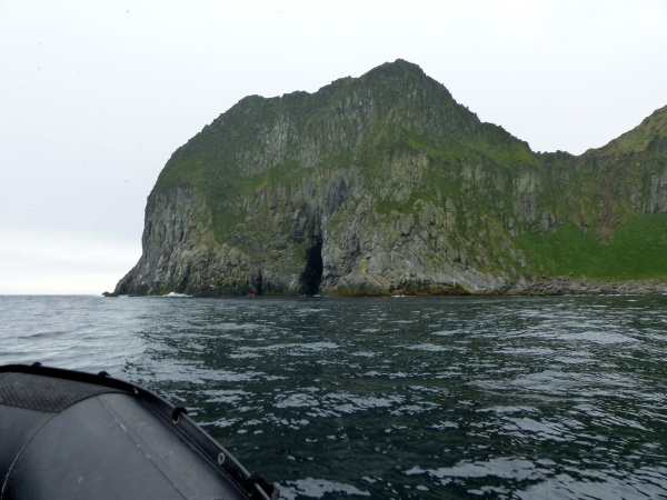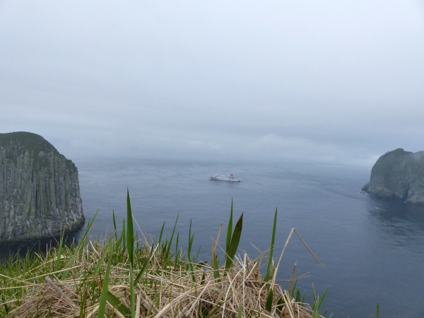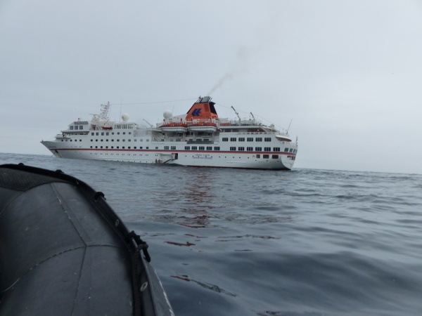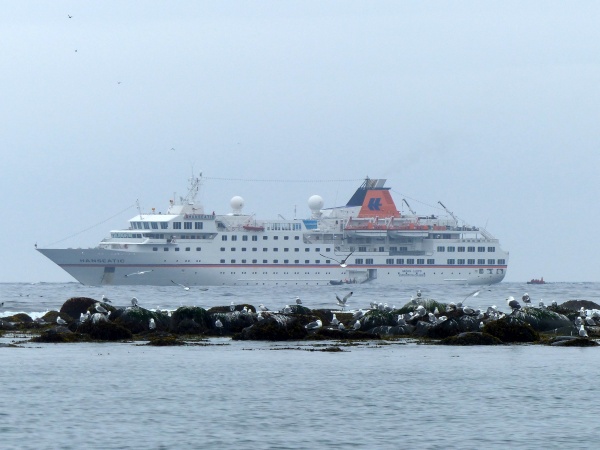 Die Hanseatic zwischen dem Felsen namens Kolpak und der Insel.