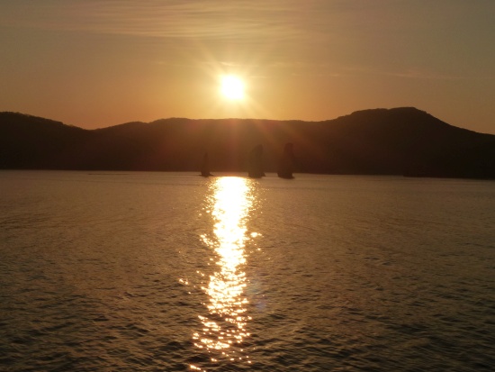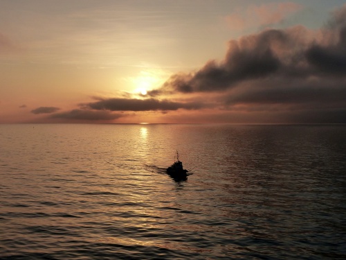 In der Bucht liegt noch leichter Nebel, aber die Sonne strahlt vom blauen Himmel und alle Sorgen um die defekte Maschine sind für einen Moment vergessen.