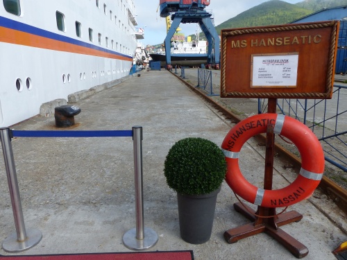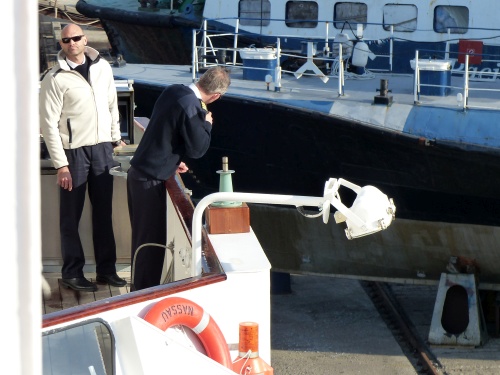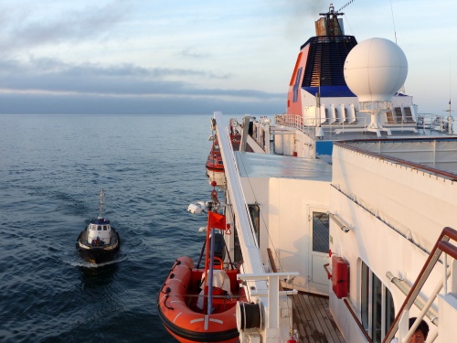 Mit Hilfe eines Schleppers werden wir an die Pier gedrückt an der wir 7.50 Uhr festmachen.