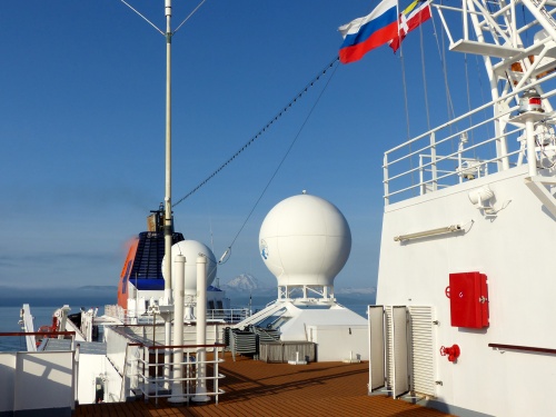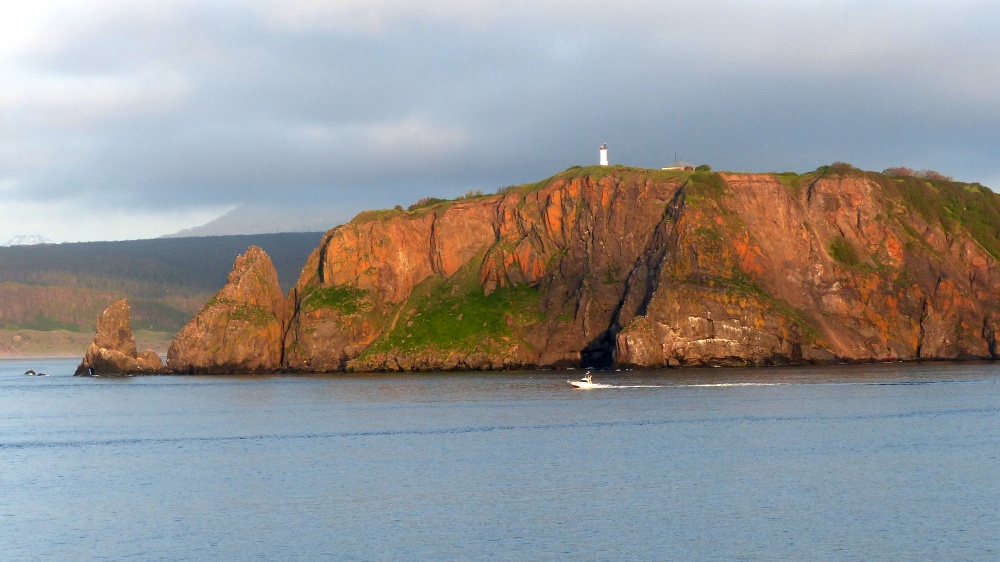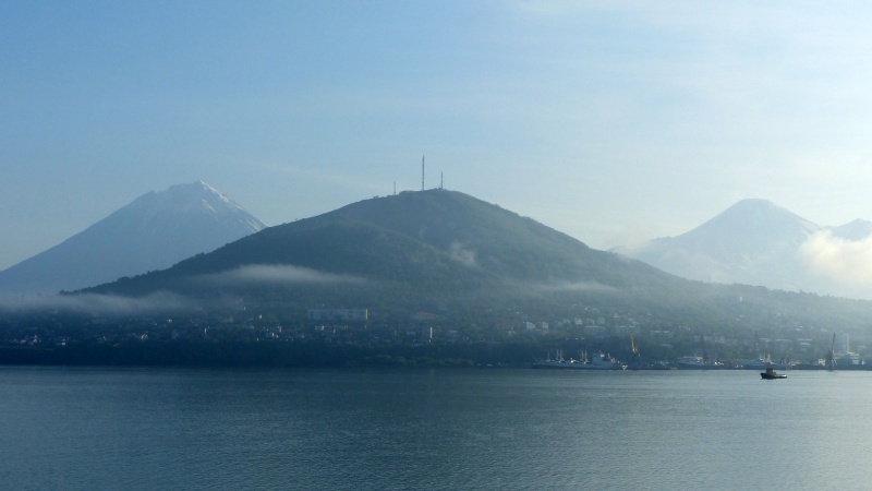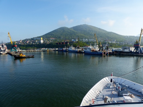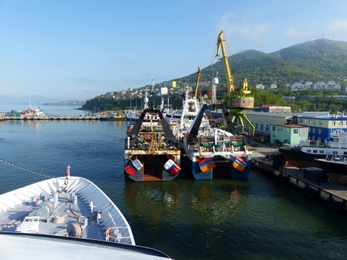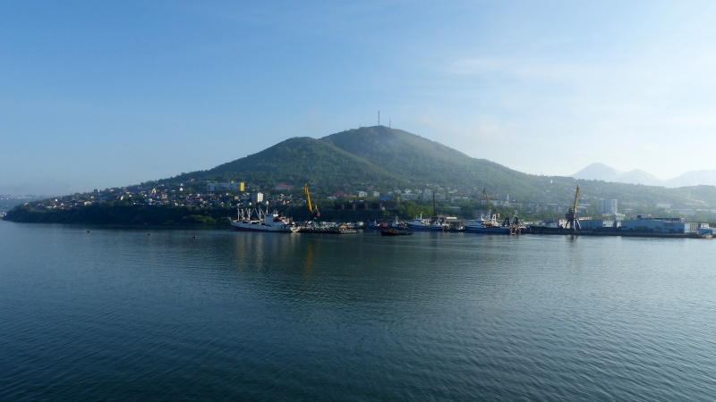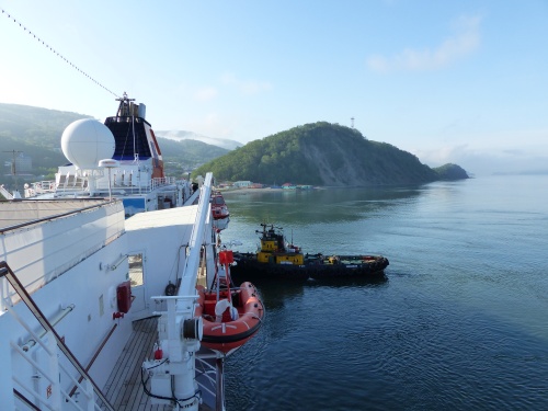 Um 5.30Uhr brachte das Lotsenboot den Lotsen, der uns durch die Avacha Bay in den Hafen bringen soll.