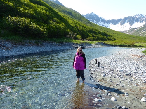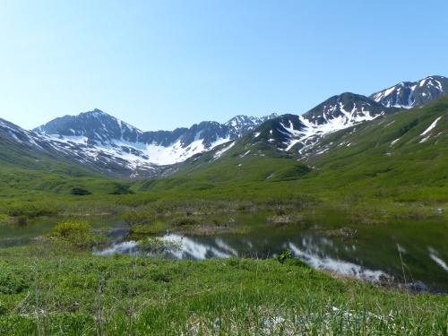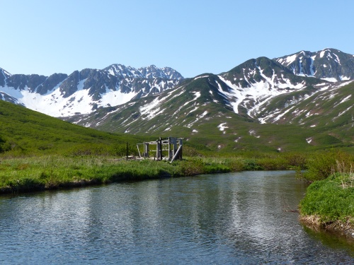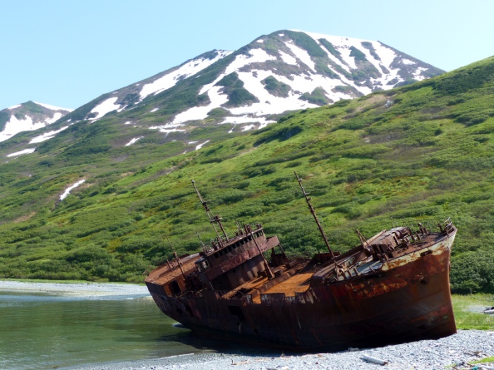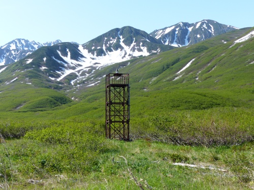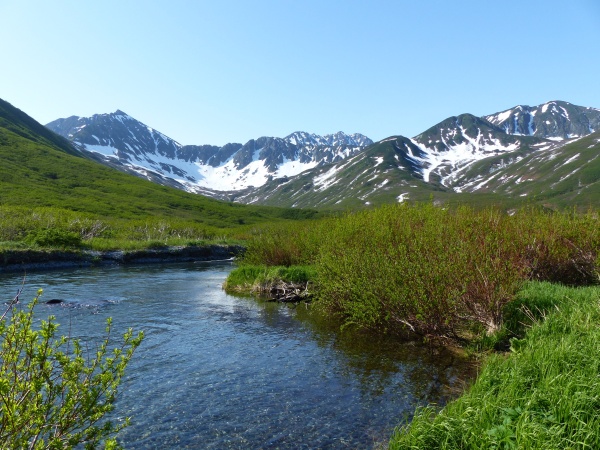 Wunderschön kann die Berge Aleut (links - Гора Алеут) und Snezhnaya (Гора Снежная) sehen.