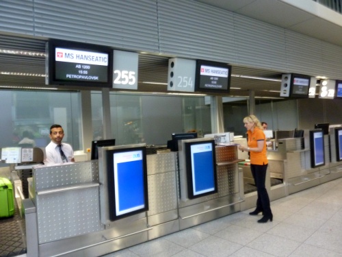 Ich reiste von Berlin-Tegel mit der Air Berlin nach Düsseldorf von 10.15-11.10Uhr. Nachdem ich mein Gepäck geholt habe, ging ich zum Check-Inn Counter und wurde freundlich von der mir bekannten Kreuzfahrtdirektorin Ulrike Schleifenbaum begrüßt.