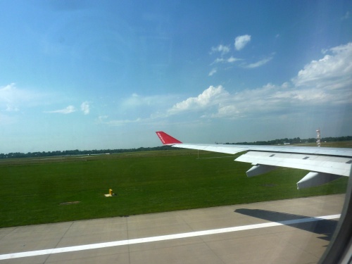 Durch die Fenster im Warteraum konnte ich schon unsere Maschine Airbus 330-200 sehen und erste Kontakte mit Mitreisenden knüpfen.