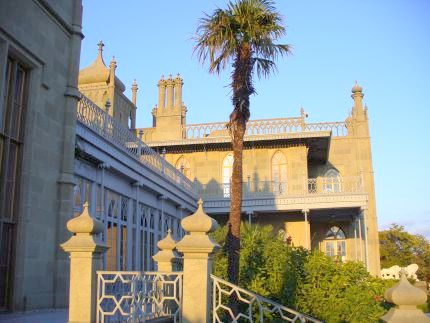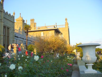 Etwa 30Minuten später und nach 10minütigem Fußmarsch erreichten wir den Woronzow Palast in Alupka. Der Bau 1828 bis 1846 wurde von Michail Woronzow in Auftrag gegeben. Von der Nordansicht her ist es in einem neu-gotischen und von der Südseite im maurischen Baustil gehalten.