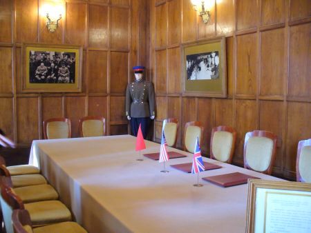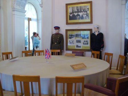 Im ersten Raum fällt der Blick auf den großen runden Tisch an dem vom 4.-11 Februar 1945 Churchill, Roosevelt und Stalin über die Nachkriegszeit verhandelten. Im gesamten Parterre ist diesem großen Ereignis eine Dauerausstellung zu besichtigen.