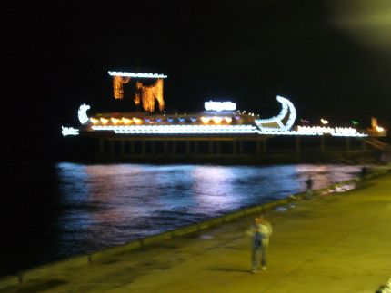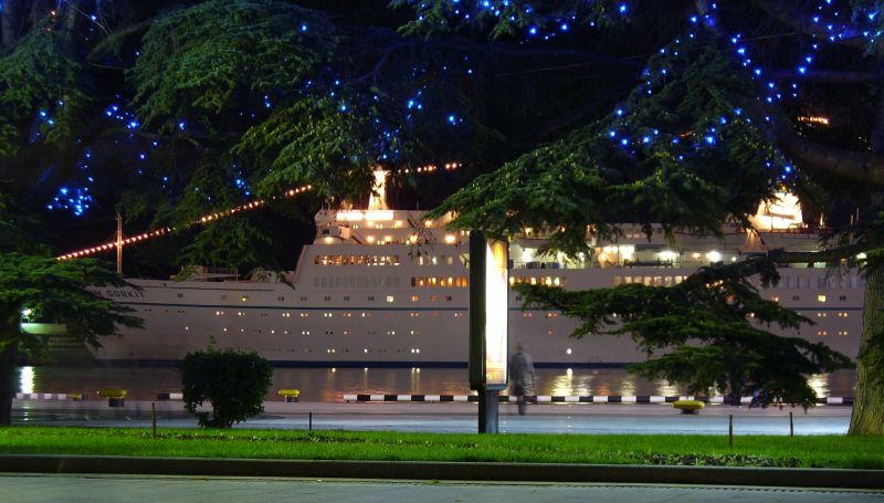 Das Auslaufen habe ich am Heck verbracht, um möglichst lang die hell erleuchtete Stadt zu sehen von der hin- und wieder Musikfetzen zu uns herüber drangen. Jalta, ist sicherlich eine erneute Reise wert, denn hier gibt es so unwahrscheinlich viel zu entdecken und auch das Hinterland soll malerisch sind mit Bergen (wie man sehen konnte) und Wäldern, Bächen und viel Natur.