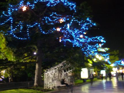 Die Bäume waren mit blauen Lichterketten geschmückt und in wunderschön gestalteten "Kuschelbänken" saßen verliebte Päarchen.