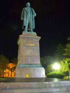 Am Beginn der Promenade das Lenin-Denkmal und dahinter das Theater von Jalta.