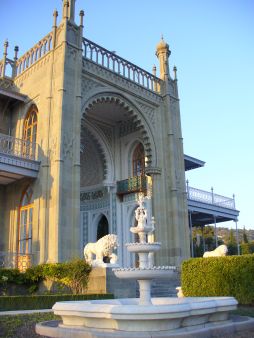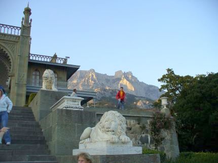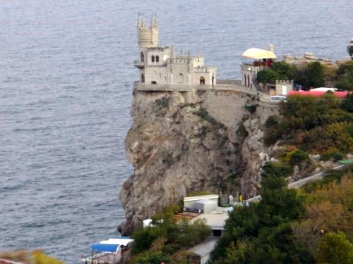 17.45Uhr die Sonne war fast untergegangen, fuhren wir zu unserem letzten Programmpunkt - dem Schwalbennest, welches wir 18Uhr erreichten. Es gilt als das Wahrzeichen der Krim und thront auf einem felsigen Kliff, dem Myis Ai-Todor-Kap, 40m hoch über dem Meer. Erbauen ließ das kleine Juwel im Stile gotischer Rheinburgen ein deutscher Ölmagnat namens Baron von Stengel im Jahre 1911. Bei dem heftigen Erdbeben von 1927 wurde das Gebäude stark beschädigt. Die Stützpfeiler der Terrasse und ein Teil der Felswand stürzten ins Meer. 1968 wurde mit der Restauration begonnen, wozu das Schloss vollständig abgetragen werden musste. Der Felsen wurde stabilisiert und gegen Erdbeben abgesichert. 1971 konnte das Schlösschen, ergänzt durch spitze Türmchen, wieder eröffnet werden. Heute befindet sich ein teures italienisches Restaurant darin.