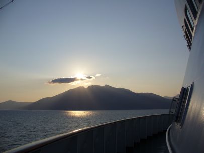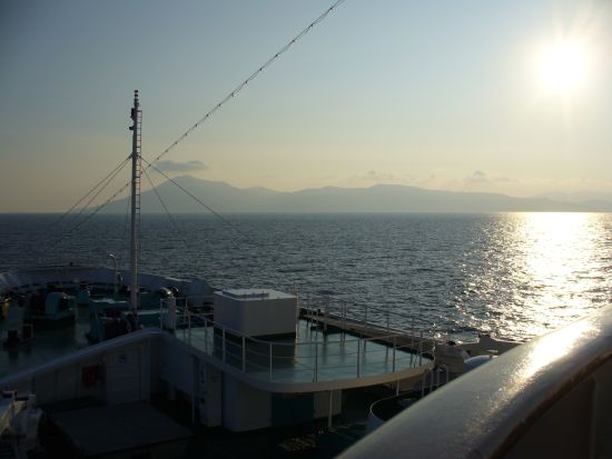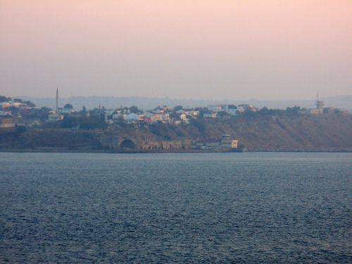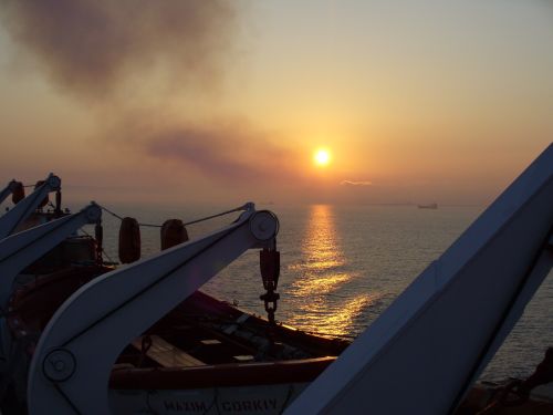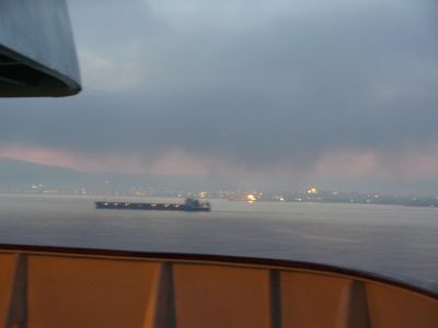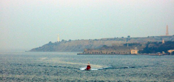 Bereits um 4.30Uhr kam der Lotse an Bord, wie ich im Nachhinein erfuhr. Ich stand kurz vor 6Uhr auf, denn da sollten wir die engste Stelle der Dardanellen passieren und so war es dann auch. Der Himmel zeigte sich zwar Wolken verhangen, aber die Dämmerung hatte bereits eingesetzt und hüllte den Horizont in ein rosé.