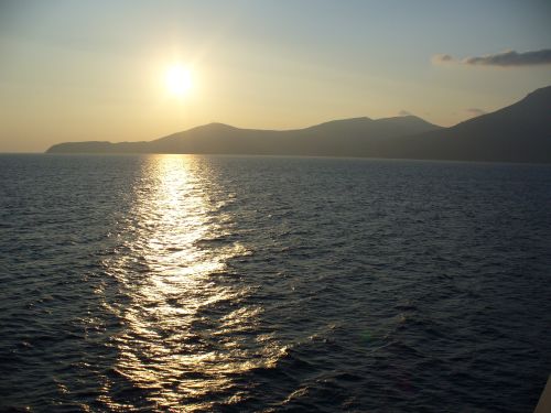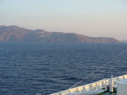 Gegen 16Uhr tauchte am Horizont die Insel Nisos Tinos auf. Mit der Sonne und einer kleinen Wolke beobachtete ich ein kleines Schauspiel der Natur.