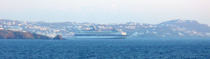 Während wir Mykonos erreichten, verließ das Schiff Celebrity Galaxy den Hafen.