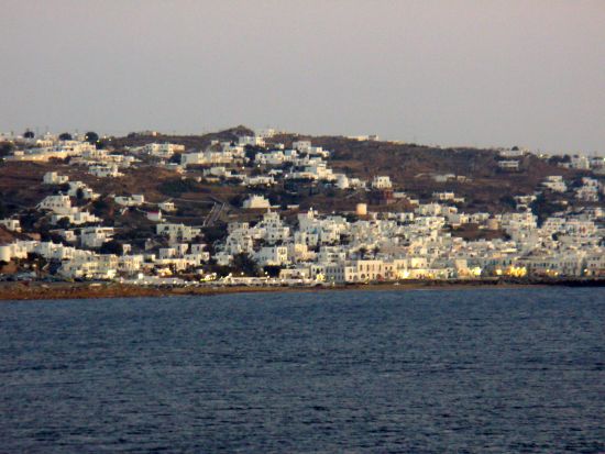 Und kurz darauf tauchte an der Backbordseite Mykonos auf, das zu den Kykladen gehört. Sie hat eine Fläche von 86 km² und ca. 9300 Einwohner.