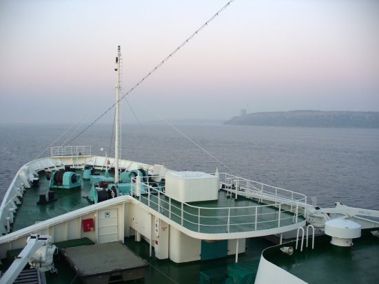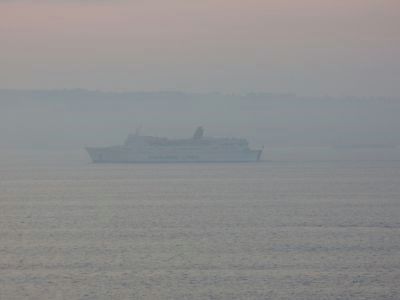 Durch den Nebel schob sich eine Fähre, man hätte es fast für ein Geisterschiff halten können bei diesen Lichtverhältnissen.