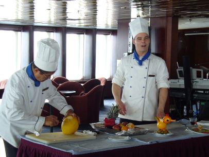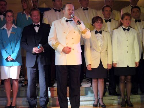 Beim Vorgeschalteten Abschiedscocktail fasste Kreuzfahrtdirektor Klaus Gruschka die Höhepunkte der Reise zusammen und Kapitän Nosko verabschiedete sich. In diesem Moment kam bei den meisten Passagieren Wehmut auf, denn zu diesem Zeitpunkt war die Zukunft des Schiffes noch offen, aber ich denke, dass in diesem Moment niemand daran gedacht hätte, dass TS Maxim Gorkiy am 25. Feburar in Indien auf den Strand gesetzt wird.