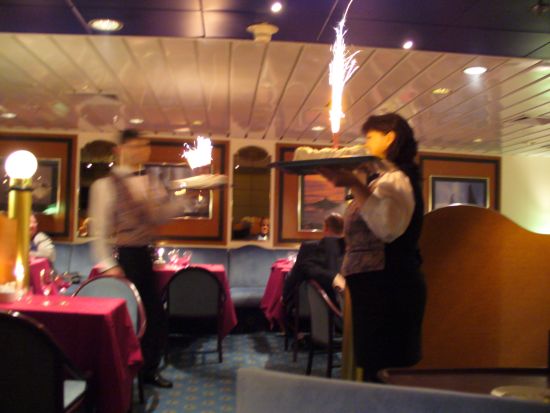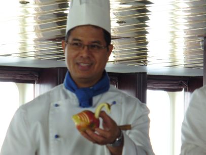 Als ich gegen 16Uhr wieder an deck kam, war es drückend schwül und später setzte sogar leichter Sprühregen ein. Aber egal, denn es stand das große Abschiedsdinner an, so dass ich mich zum Ankleiden in meine Kabine zurückzog.
