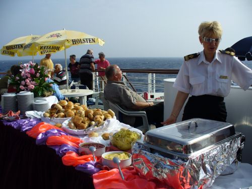 Heute stand ein erholsamer Seetag auf dem Programm, den ich zum Ausschlafen und Relaxen benutzte. Gegen 10Uhr war es bedeckt und es herrschte eine Seestärke von 4 und Windstärke 6. Wir pflügten mit 16kn durch die Adria und bei 23°C fand an der Neptunbar ein Frühschoppen statt.