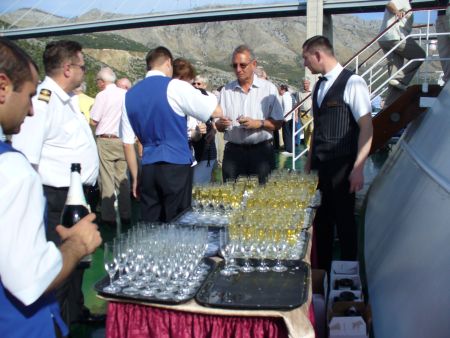 Kurz vor unserer Ausfahrt wurde oberhalb der Neptun Bar fleißig Sekt ausgeschenkt, um unseren letzten Hafen gebührend zu verabschieden und uns innerlich auf den Abschied von "meinem persönlichen Traumschiff" vorzubereiten.