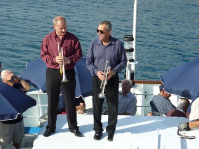 Nachdem wir von der Pier abgelegt hatten, spielten die Bordmusiker unsere Auslaufmelodie "Nehmt Abschied Brüder" - für alle an Bord sind diese Worte mittlerweile Realität geworden und viele Passagiere hatten Tränen in den Augen.