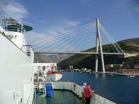 Langsam setzte TS Maxim Gorkiy zurück und vor der imposanten Brücke drehte sie den Bug in Richtung offener See.