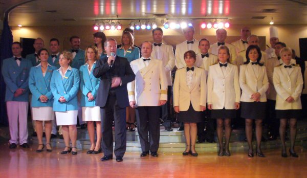 Wie auf jeder Kreuzfahrt begann der Abend mit der Begrüßung durch den Kapitän und dem Kreuzfahrtdirektor sowie dem obligatorischen Begrüßungscocktail im Musiksalon.