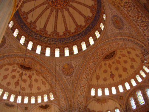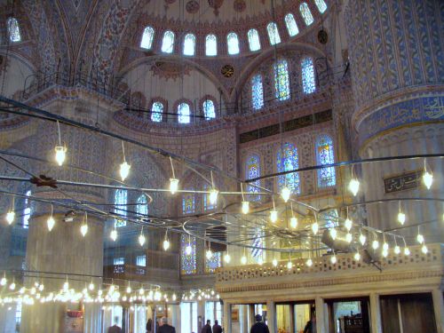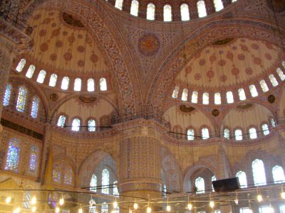 Diese Moschee ist bei uns als blaue Moschee bekannt - Grund sind die weiß-blauen Fliesen, welche die gewaltige Kuppel zieren. Der Gebetsraum ist 53m lang und 51m breit. Die Hauptkuppel hat einen Durchmesser von 23,5 m und ist 43 m hoch. Sie wird von vier Spitzbögen und vier flachen Zwickeln getragen, die wieder auf vier riesigen, 5 m dicken Säulen ruhen. 260 Fenster erhellen den Innenraum.
