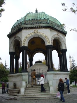 Weiter ging es zu Fuß zum Deutschen Brunnen (Alman Çeşmesi), welcher 1898 in Gedenken an den Besuch des deutschen Kaisers Wilhelm II. errichtet wurde. Der neobyzantinische achteckige Kuppel wird von acht Marmorsäulen getragen. Das Innere der Kuppel ist mit goldenen Mosaiken versehen.