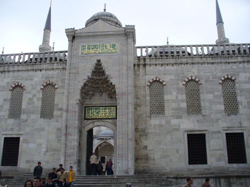Die Sultan-Ahmed-Moschee, welche 1609 von Sultan Ahmed I. in Auftrag gegeben wurde, betreten wir durch ein eindrucksvolles Eingangstor.