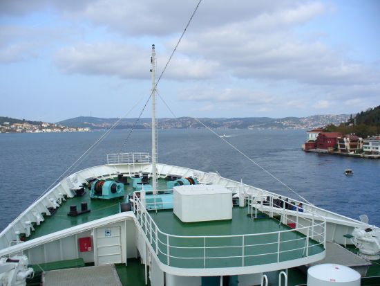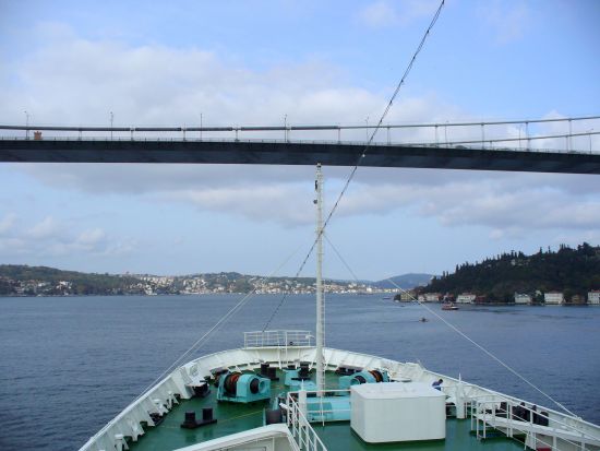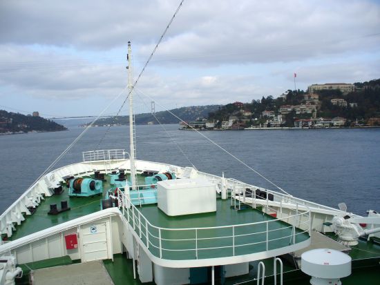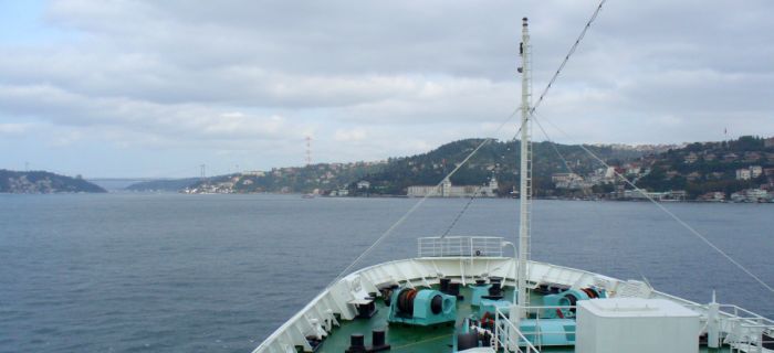 Unterwegs passieren wir immer wieder Container-, Fracht- und Tankschiffe, die aus dem Schwarzen Meer kommen.