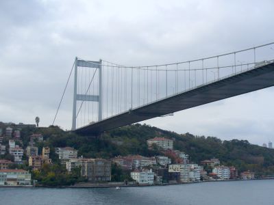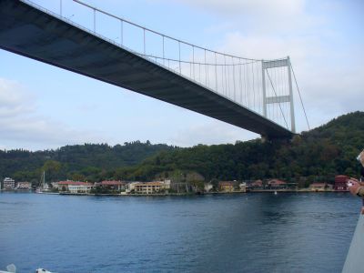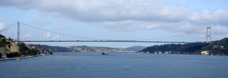 Hinter der Brücke schmiegt sich auf der asiatischen Seite der kleine Ort Kanlica an den Bosporus.