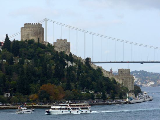 Die Rumelische Burg auf der europäischen Seite wurde 1452 durch Sultan Mehmed II. an der schmalsten Stelle des Bosporus, der hier nur 700m breit ist, errichtet.