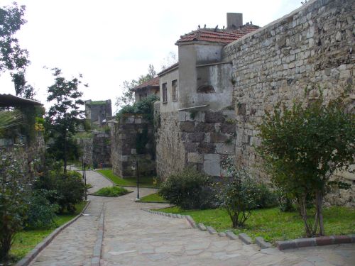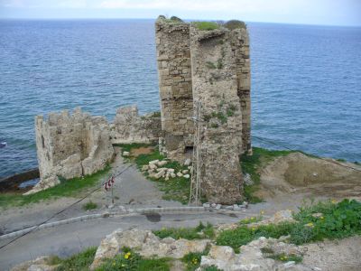 Die wuchtigen Stadtmauern schützen einst die Stadt und verliefen genau an der engsten nur 200m breiten Stelle der Boztepe Halbinsel.