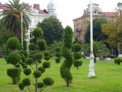 Da die Straßen der Innenstadt wie auf einem Schachbrett angeordnet sind, gelange ich nach einer Rechtsbiegung bereits zum Batumi Sea Side Park, der bereits 1884 eröffnet wurde und damals eine Länge von 800m besaß. Er verlief vom Stadion bis zum Hotel Intourist. Heute sind es knapp 40ha und den Primosky Boulevard kann man 4km entlang schlendern.