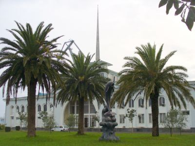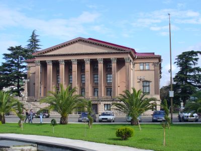 Kurz darauf passierte ich das Ilya Chavchavadze State Drama Theater (635 Sitze und Architekt Teplitski) in der Rustaveli Ave. In der Mitte des Platzes steht ein Monumentes des Namensgebers. Das Theater wirkt wie die Verkleinerung des berühmten "Bolschoi Theaters".