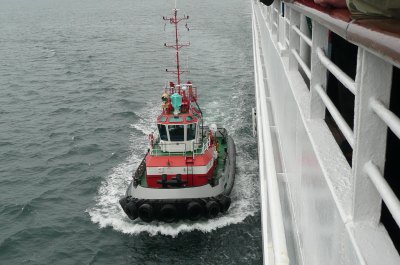 8.30Uhr kam der Lotse an Bord, um uns sicher in den Hafen zu bringen.