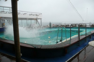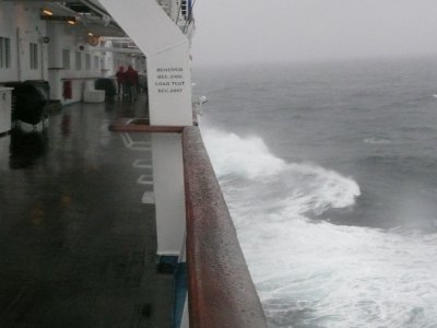 Am Nachmittag drehte ich wie auch schon am Vormittag meine Runde ums Schiff. Die Wellen krachten links gegen die Bordwand und bei jedem mächtigen Schlag wirkte es als ob sich das Schiff schüttelte. Gischt spritze und im Schiff konnte man das Gebälk ächzen hören.