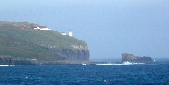 Gegen 14Uhr passierten wir den Leuchtturm Borðan auf der Insel Nólsoy. Er wurde 1893 gebaut und zählt zu den lichtstärksten Leuchttürmen im nordatlantischen Raum und ist ein wichtiger Navigationspunkt bei der Einfahrt nach Thorshavn. Das Leuchtfeuer des 14m hohen Turmes ist ca. 62m weit zu sehen. Er liegt vor der Klippenformation Kápulin.